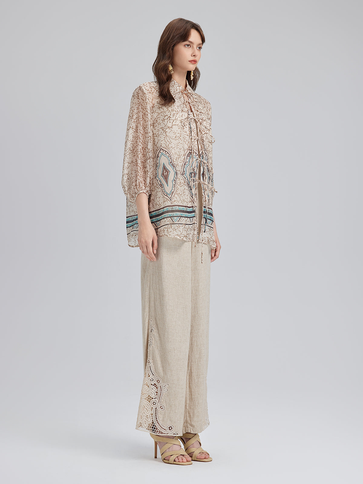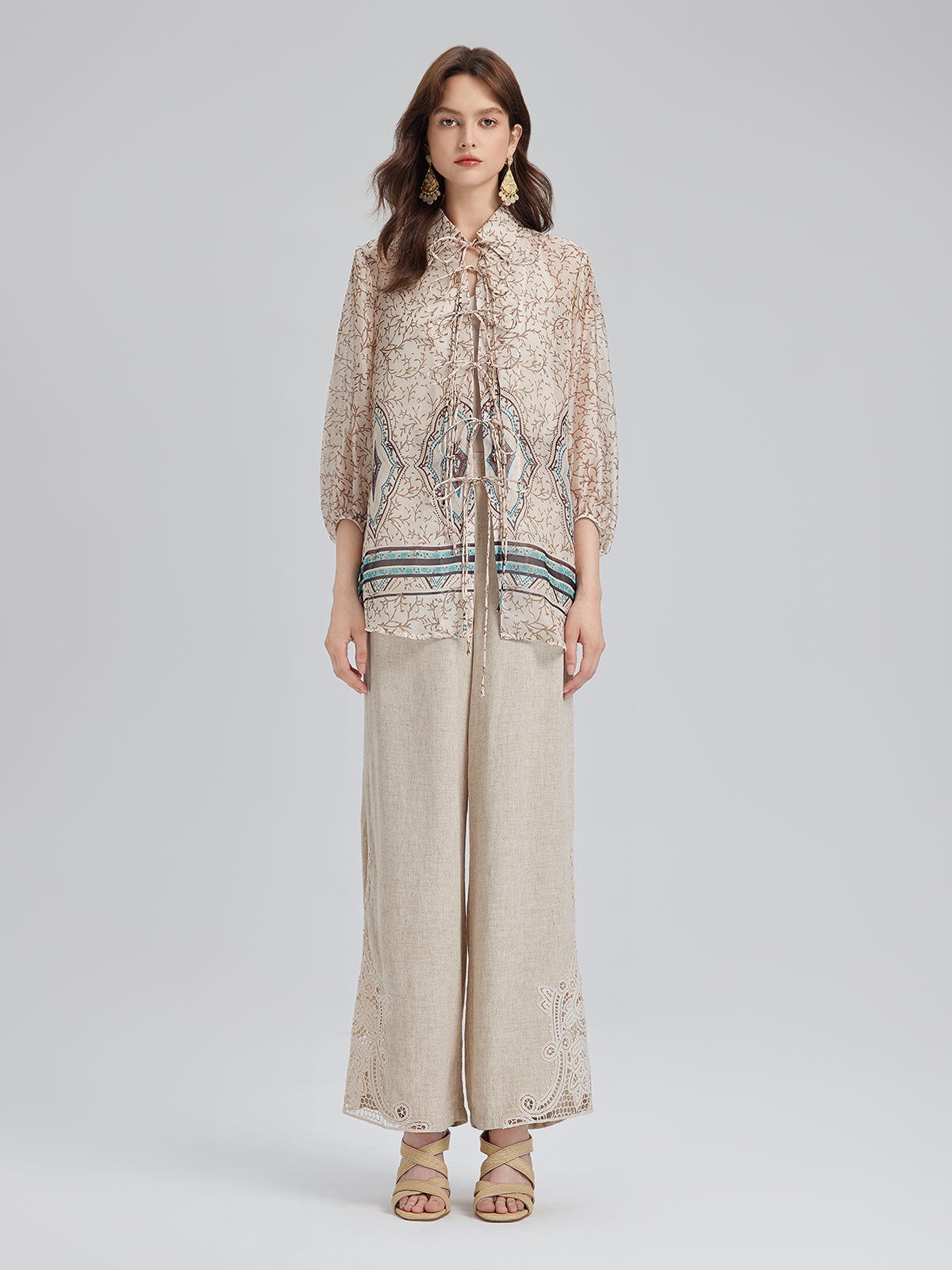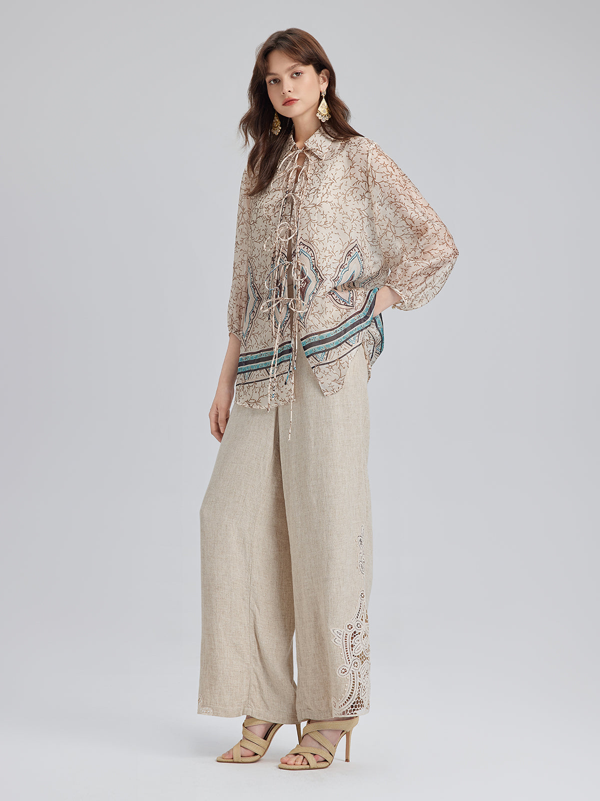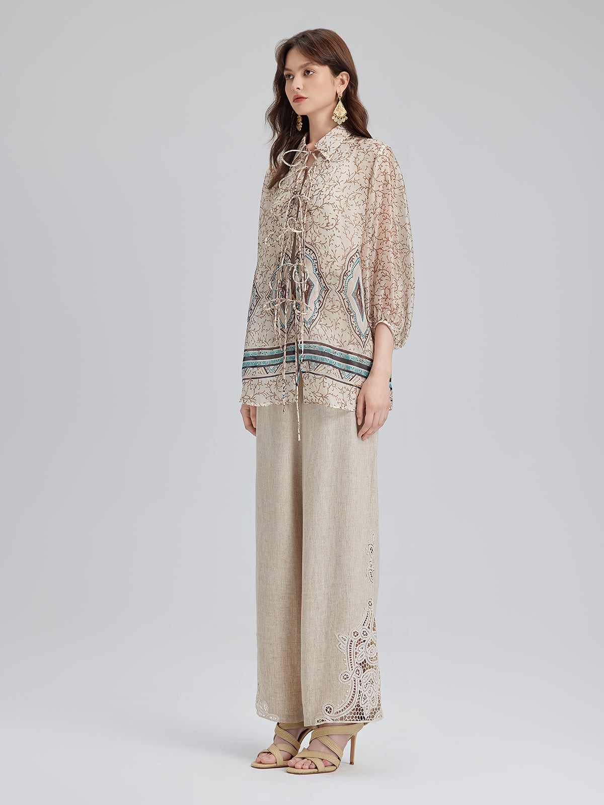 Soft-hued viscose feels breathable and gentle on the skin, while the tie-front adds a touch of detail and adjustability. Relaxed sleeves ensure all-day comfort, and the easy palette pairs effortlessly with your wardrobe. (Inner wear not included.)