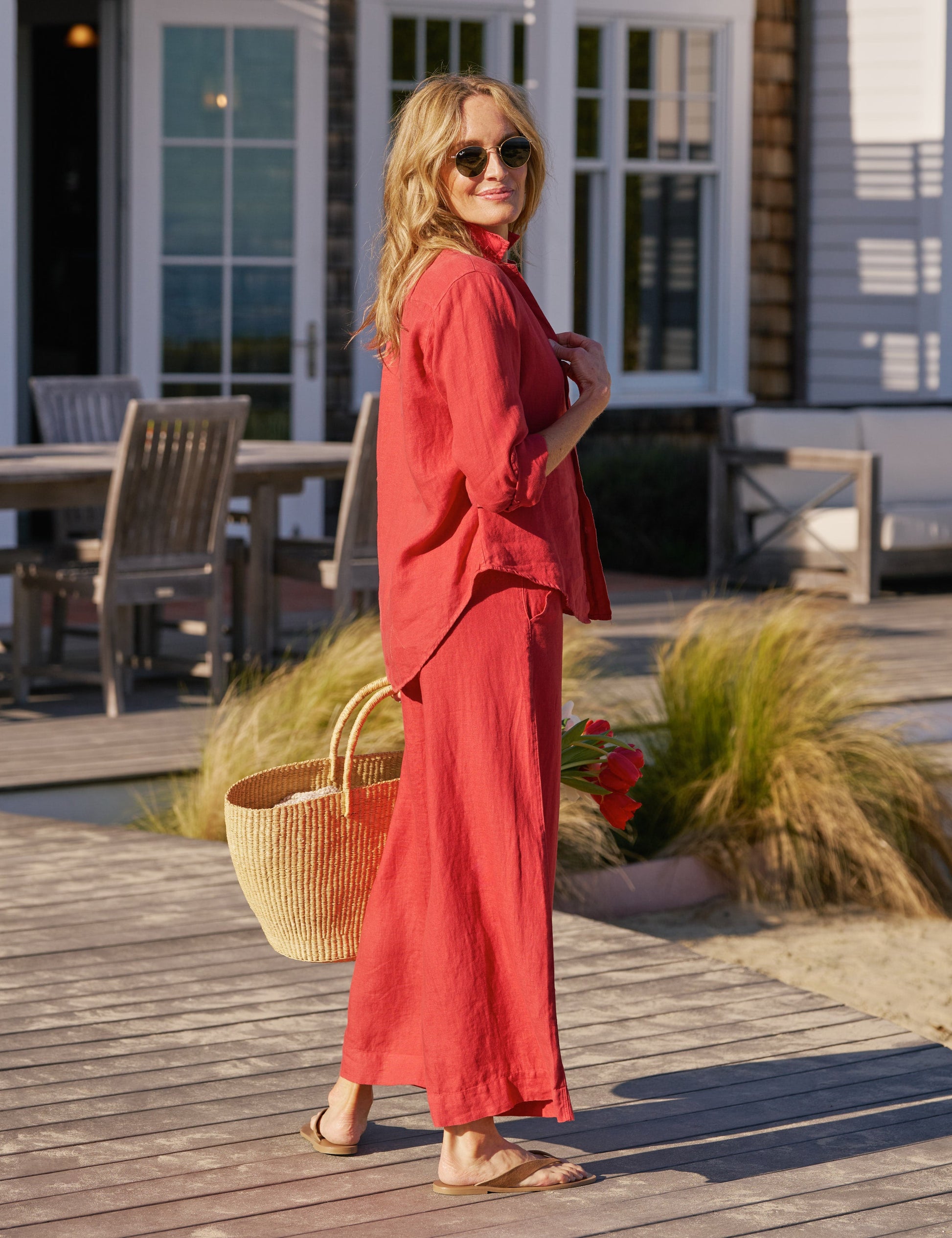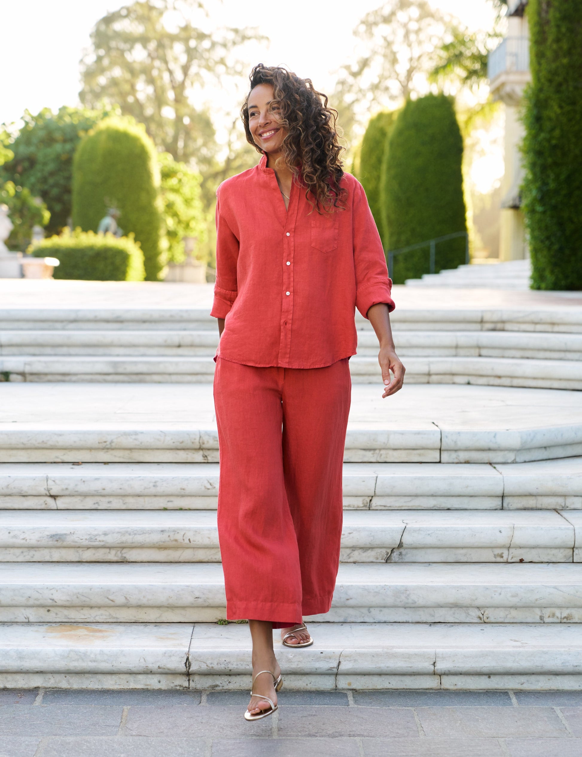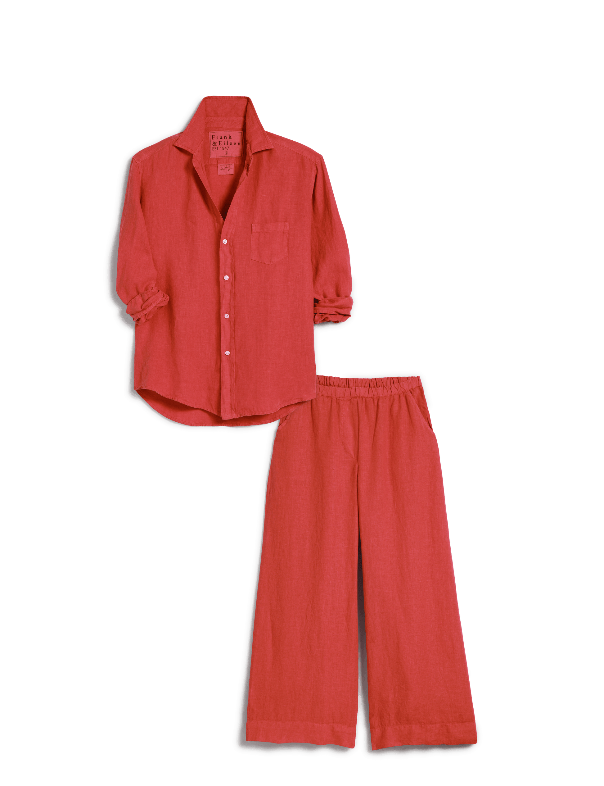 Inspired by the la dolce vita ease of balmy summer days in Tuscany, our Getaway Set pairs F&E's iconic Eileen button-up with our wide-legged and breezy Maisie pull-on pant. This effortlessly airy duo exudes versatile luxury. Psst, the Getaway Set packs, pairs and wears like a dream—your suitcase can thank us later!