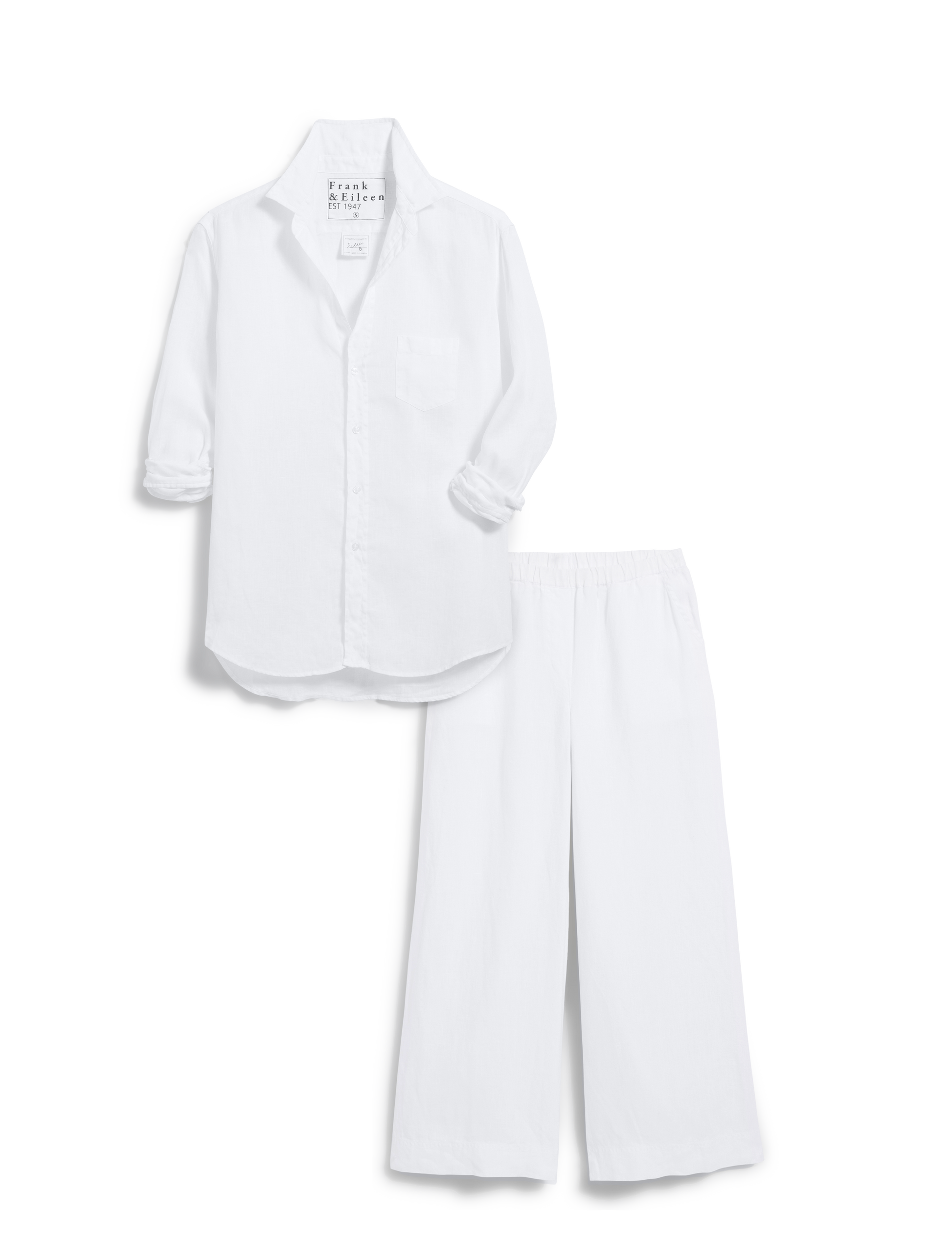Inspired by the la dolce vita ease of balmy summer days in Tuscany, our Getaway Set pairs F&E's iconic Eileen button-up with our wide-legged and breezy Maisie pull-on pant. This effortlessly airy duo exudes versatile luxury. Psst, the Getaway Set packs, pairs and wears like a dream—your suitcase can thank us later!