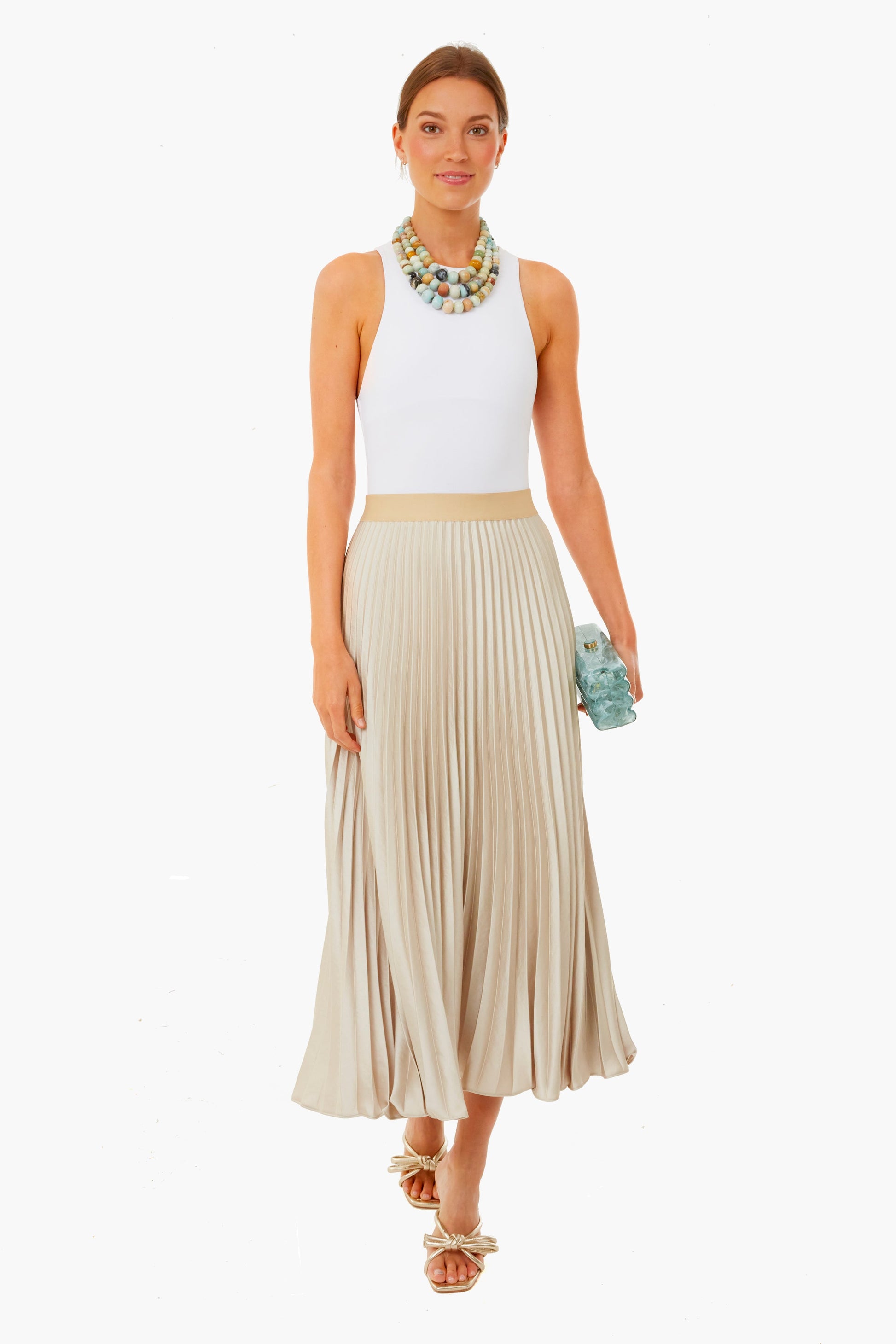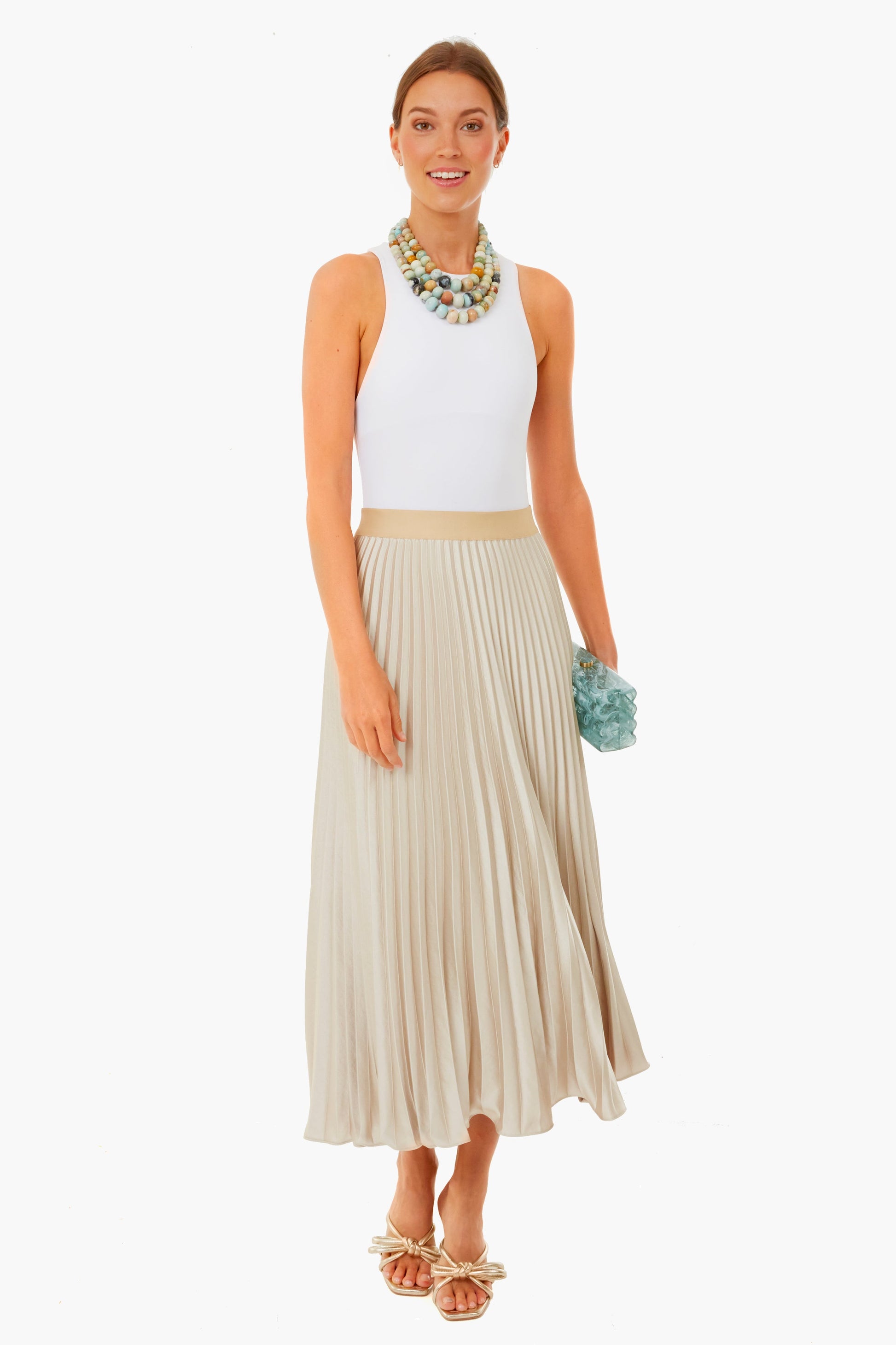 The Vanilla Gavino Skirt evokes timeless elegance with a pleated design and midi length. Effortlessly chic with a twirl-worthy factor, this style is a true style staple. Pair back to a blazer and flats for the office and add statement jewelry and heels for dinner with friends!